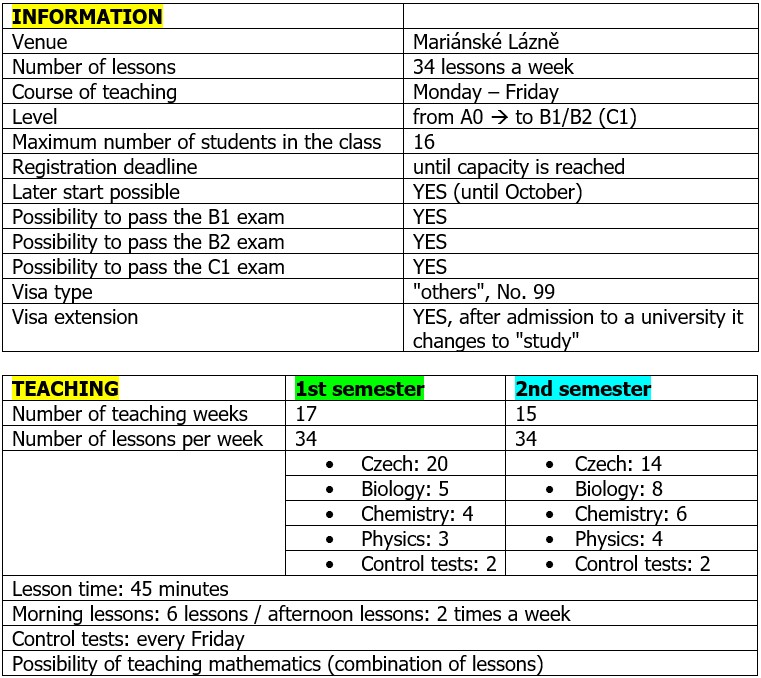 Academic year: 2026/2027 Study period: September 2026 – May 2027 Price: 171 820 CZK